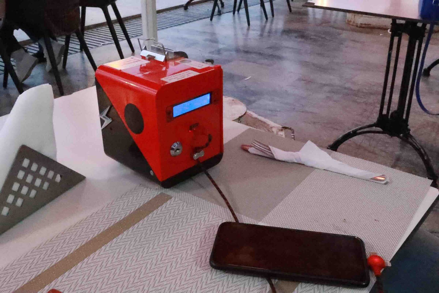 So we stopped for some refreshments and I was intrigued by the phone-battery back-up on the table. Coin-fed it was far too bulky/heavy to be taken away!